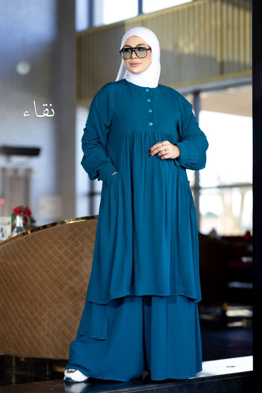 موديل: ادناء نقاء إدناء بتصميم واسع وفضفاض، أنيق وعصري للغاية. مكوّن من قطعتين: تونك طويل...
